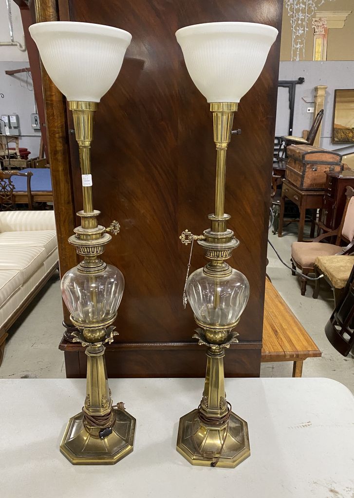 Pair of Mid Century Lamps, torchiere shades, with shades Pair of Mid Century Lamps, torchiere shades, with shades