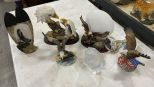 744 Group of Eagle Figurines and Sculpted Glass Eagle Paperweight or Statue