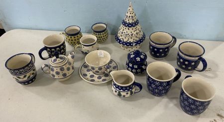 Group of Porcelain Cups, Milk and Sugar Bowls, Christmas Tree Candle Dome, and Other Misc Items Group of Porcelain Cups, Milk and Sugar Bowls, Christmas Tree Candle Dome, and Other Misc Items