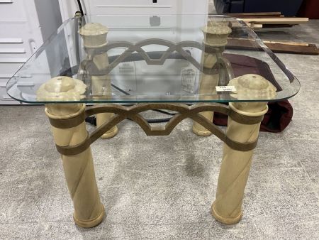 Contemporary Glass Top Lamp Table, 21"h., 28"w. Location Left Office Contemporary Glass Top Lamp Table, 21"h., 28"w. Location Left Office