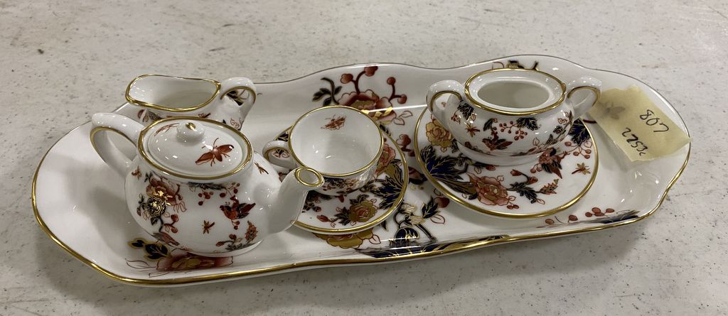 Bone China Coalport Mini Tea Set, pitcher, cups, tray. Location Left Plastic Racks Bone China Coalport Mini Tea Set, pitcher, cups, tray. Location Left Plastic Racks
