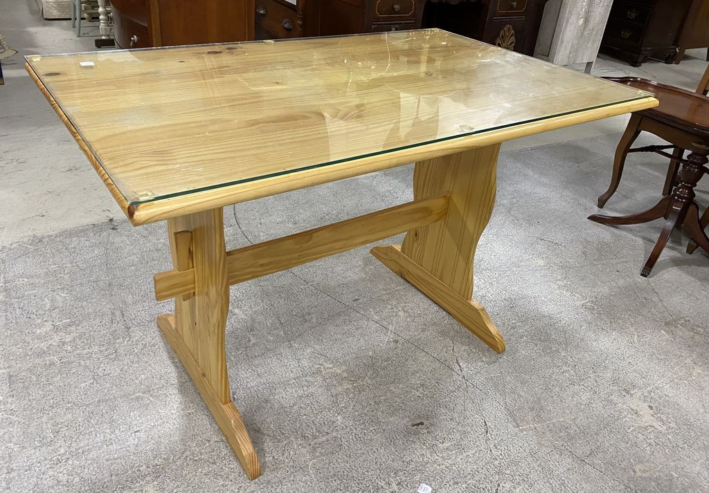 Pine Farm Style Table, 30"h., 48"w., 29"d. Location 5th Row Pine Farm Style Table, 30"h., 48"w., 29"d. Location 5th Row