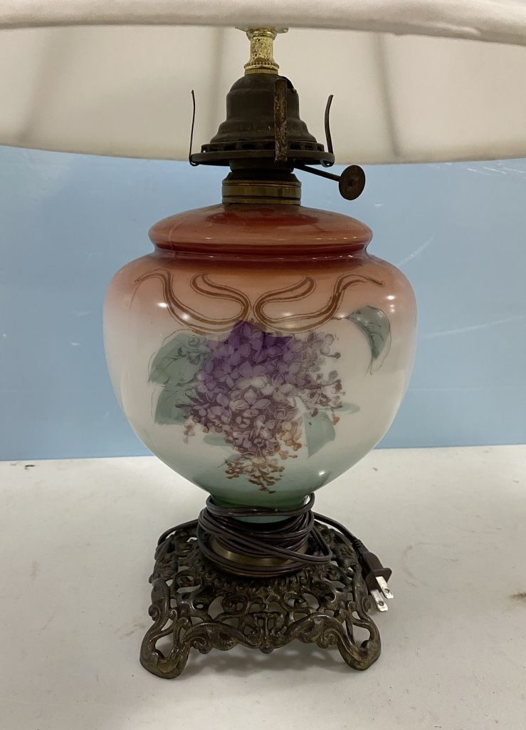 Vintage Glass Oil Lamp Converted To Traditional Lamp, 23"h. Vintage Glass Oil Lamp Converted To Traditional Lamp, 23"h.