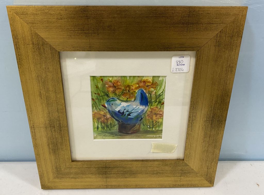 Signed Bird Watercolor, matted, gold gilt framed, 12"h., 12"w. Signed Bird Watercolor, matted, gold gilt framed, 12"h., 12"w.