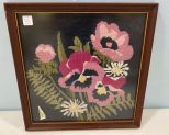Framed Needlepoint of Flowers, frame is 16"h., 16"w. Location Left Office Framed Needlepoint of Flowers, frame is 16"h., 16"w. Location Left Office