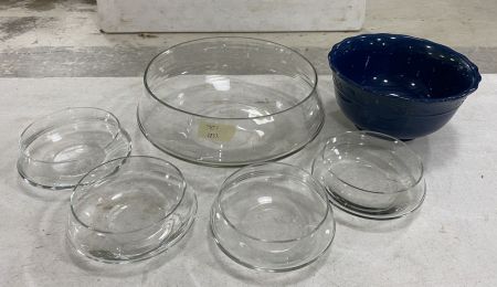 907 Glass Serving Bowl with Bowls, and Blue Bowl