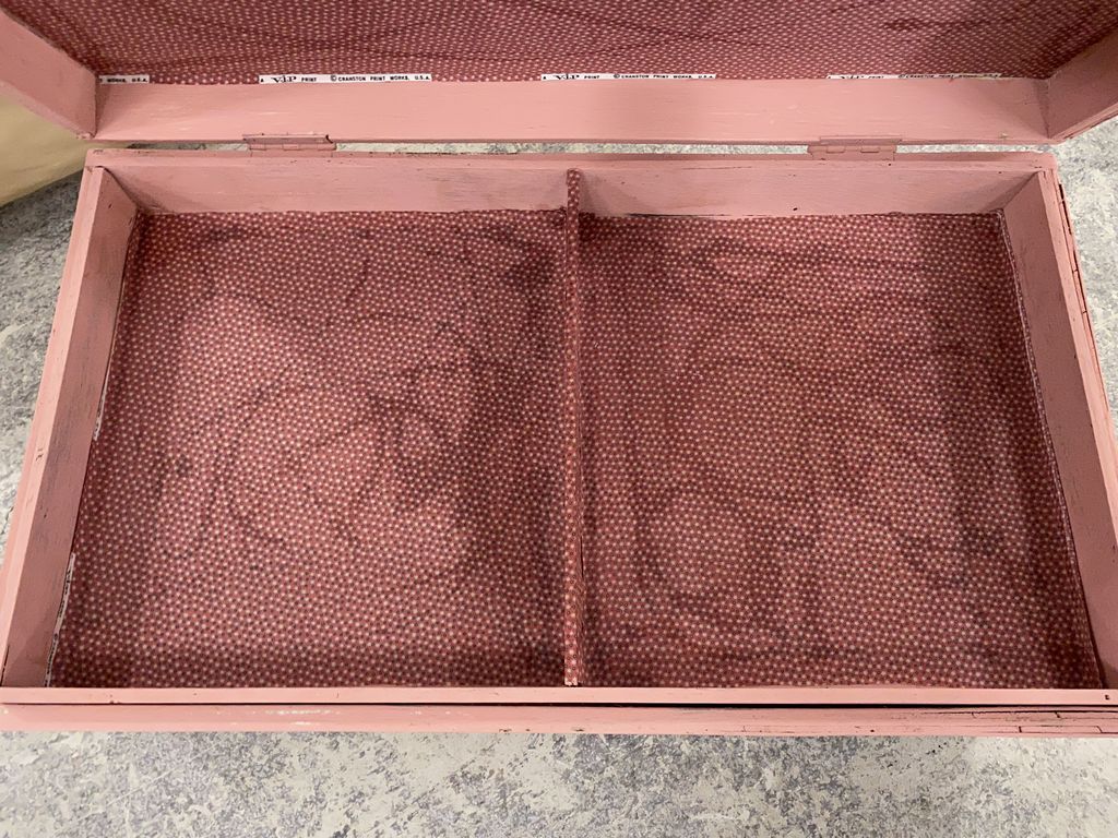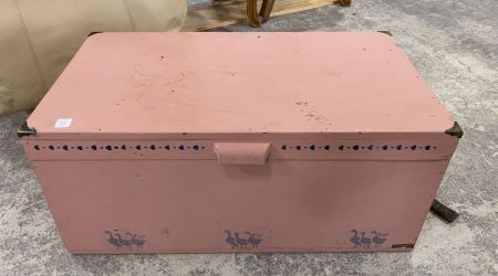 Pink Painted Storage Trunk, 13"h., 30"w. Pink Painted Storage Trunk, 13"h., 30"w.