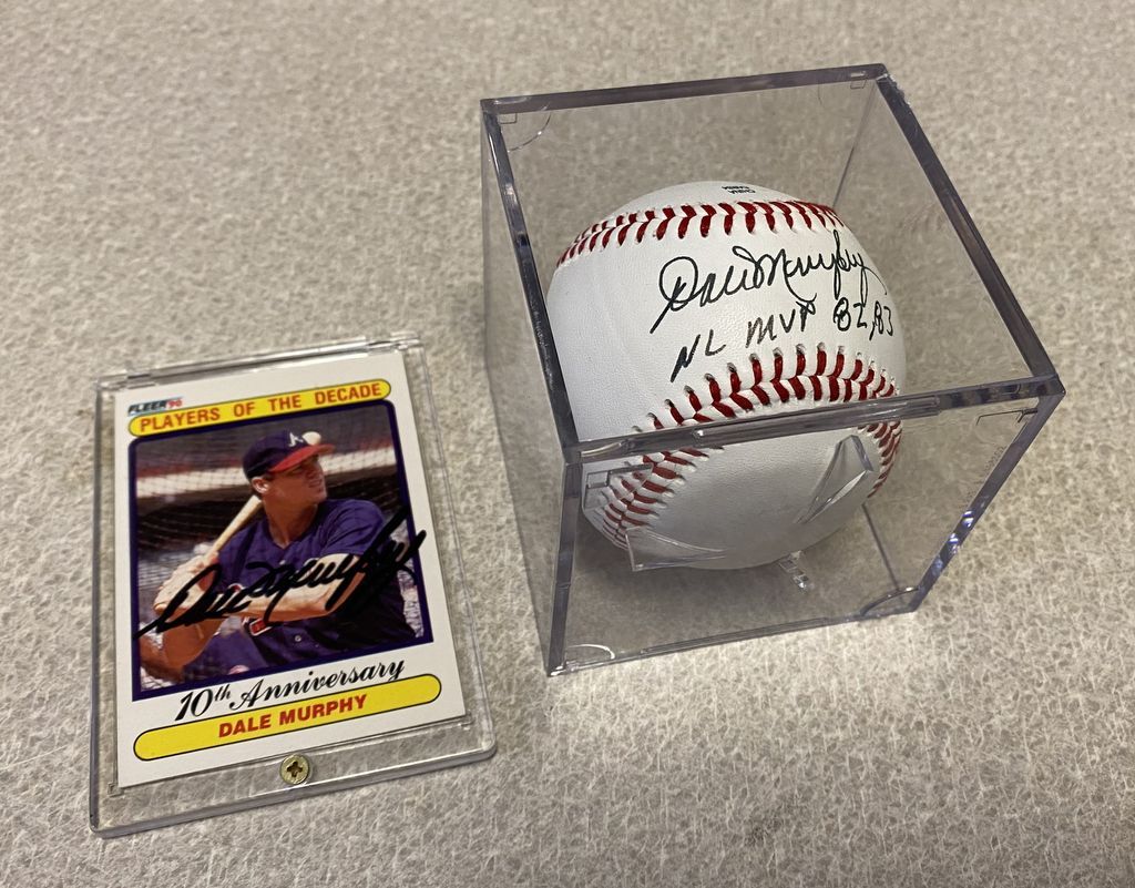 Signed Dale Murphy Baseball Card and Baseball Signed Dale Murphy Baseball Card and Baseball