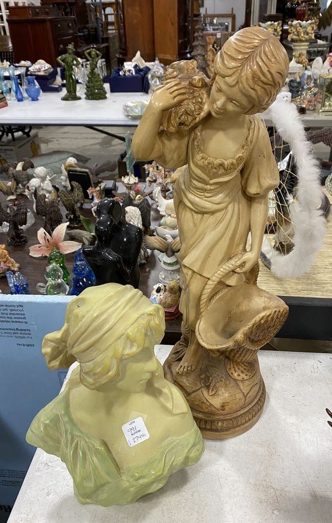 991 Pottery Couple, Tall Plaster Lady Statue and Bust