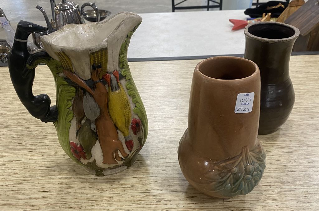 1007 Vintage Pitcher, 2 Ceramic Vases