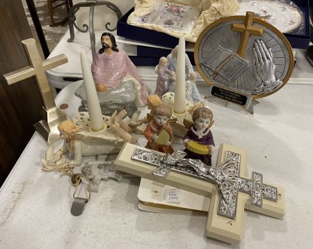 Religious Figurines and Collectables, Location Left Back Metal Wall Shelves Religious Figurines and Collectables, Location Left Back Metal Wall Shelves