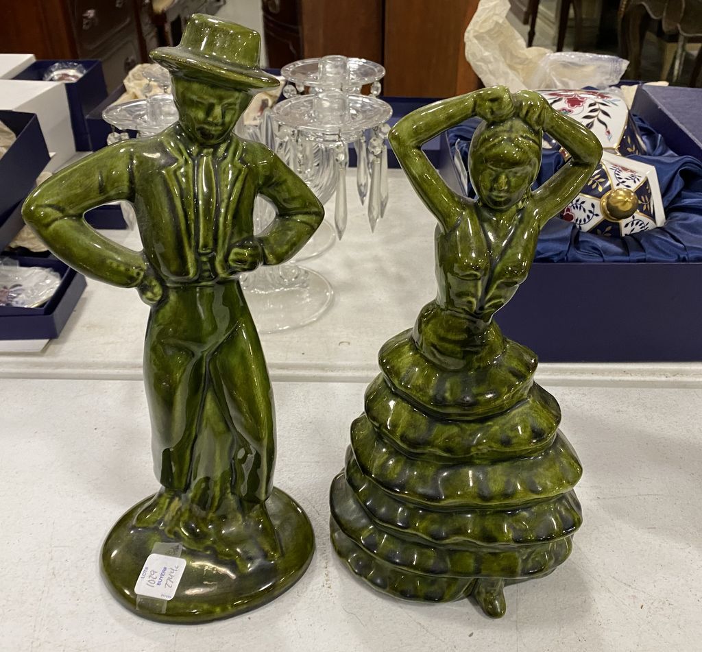 Brown Ceramic Man and Woman Dancers 13"h. Brown Ceramic Man and Woman Dancers 13"h.