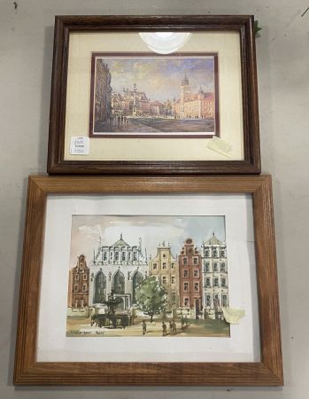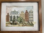 Two Framed Prints, European City View, matted, framed 10"h. 13"w. Two Framed Prints, European City View, matted, framed 10"h. 13"w.