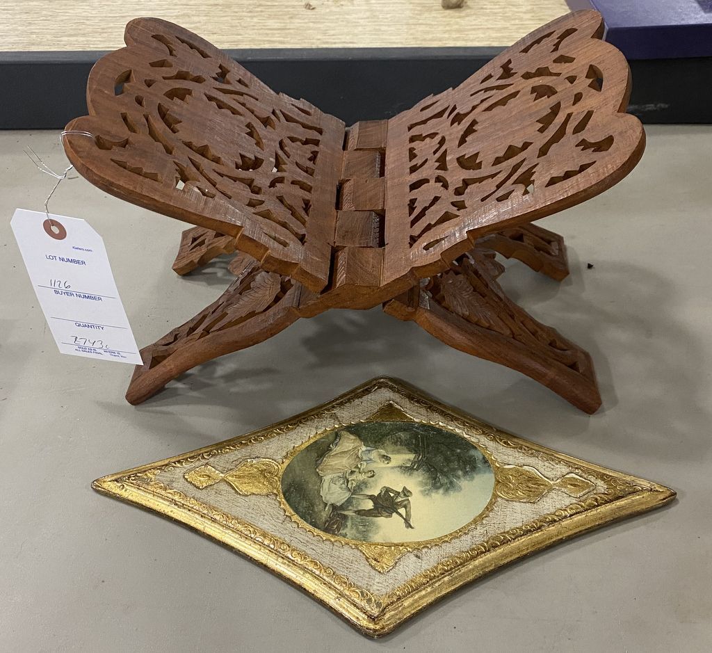 Wood Carved Stand and Florentine Plaque Wood Carved Stand and Florentine Plaque