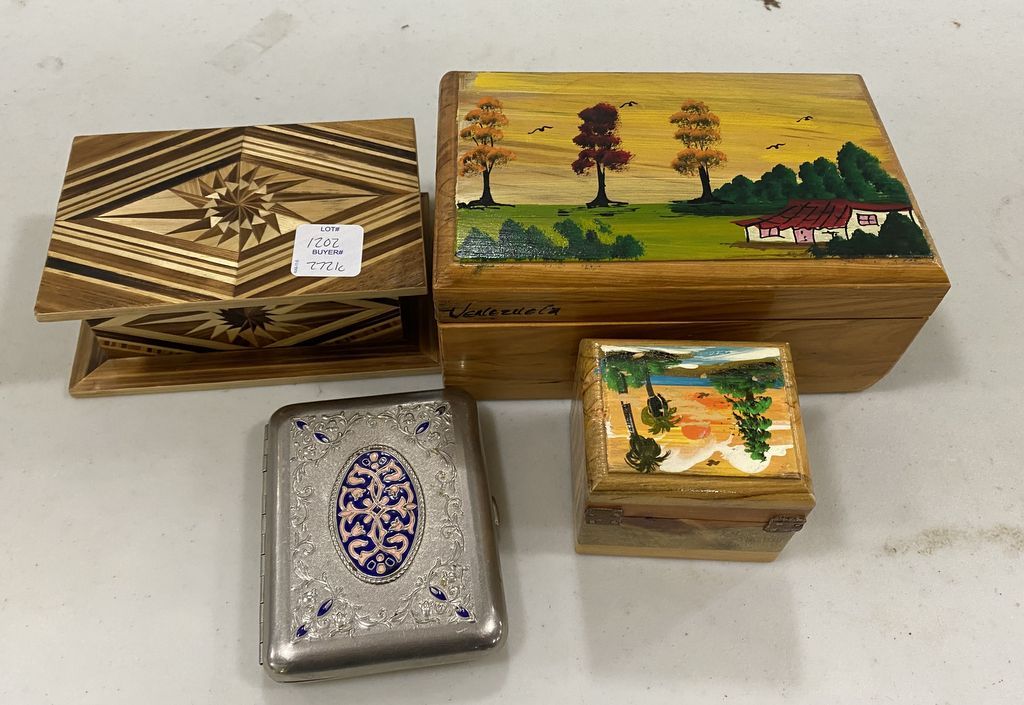 1202 Three Wood Trinket Boxes and Cigarette Holder
