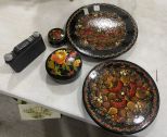 Two Painted Plates, and Trinket Boxes Two Painted Plates, and Trinket Boxes