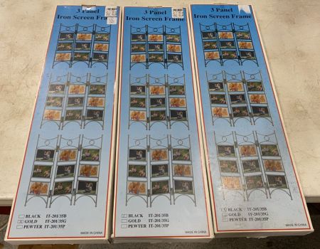 Three 3 Panel Iron Screen Frame. Location Left Back Metal Middle Shelves Three 3 Panel Iron Screen Frame. Location Left Back Metal Middle Shelves