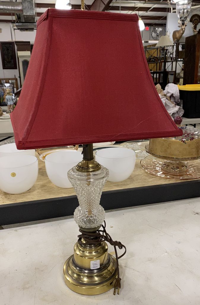 Brass and Glass Candle Stick Lamp, with shade, 29"h. Brass and Glass Candle Stick Lamp, with shade, 29"h.