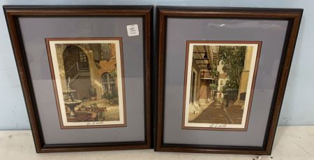 Two Signed Numbered Street Alley Prints, 195/300, 185/300, matted, framed, 16"h., 12"w. Location Left Back Metal Middle Shelves Two Signed Numbered Street Alley Prints, 195/300, 185/300, matted, framed, 16"h., 12"w. Location Left Back Metal Middle Shelves