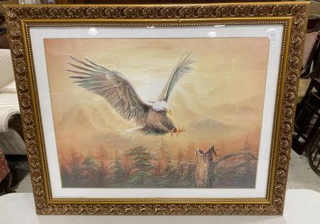 Eagle Landscape Print, matted, framed, 26"h., 32"w. Location Art Back Wall Eagle Landscape Print, matted, framed, 26"h., 32"w. Location Art Back Wall