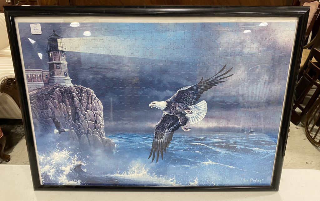 Framed Eagle Flying Puzzle, 21"h., 29"w. Framed Eagle Flying Puzzle, 21"h., 29"w.