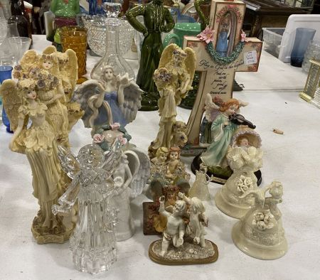 Group of Angel and Religious Figurines, Location Right Metal Racks Group of Angel and Religious Figurines, Location Right Metal Racks