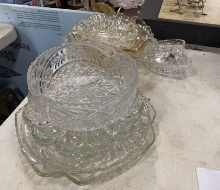 1345 Group of Assorted Glassware Includes Serving Bowls, Trays, Plates.