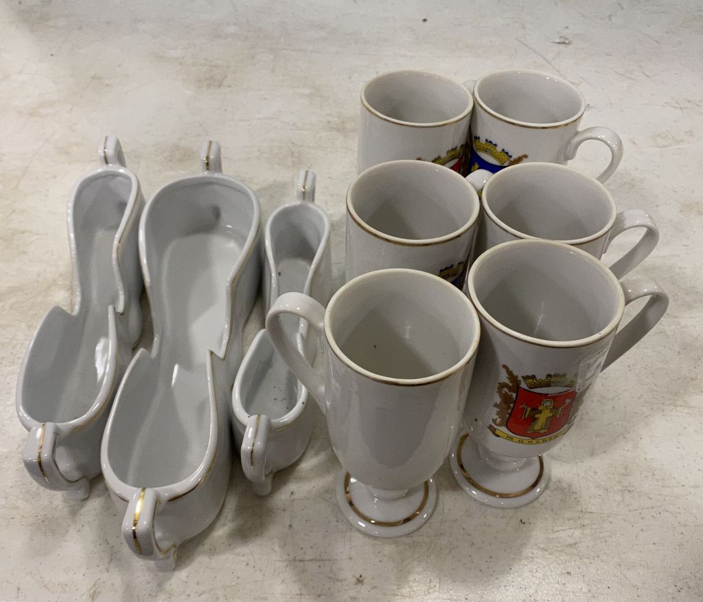 Set of 6 Vintage Crest Porcelain German Cups with Handle, Set of 3 Porcelain Dishes Set of 6 Vintage Crest Porcelain German Cups with Handle, Set of 3 Porcelain Dishes