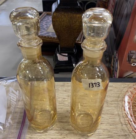 1373 Pair of Colored Glass Apothecary Bottles with Stoppers