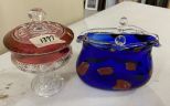 1397 Ruby Stained Glass King's Crown Pattern Candy Dish and Block Crystal Coin Purse Form Vase Mouth Blown