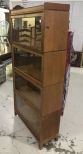 Gunn four stack bookcase, glass door, oak, base and top, age wear, 70"h., 34"w. Gunn four stack bookcase, glass door, oak, base and top, age wear, 70"h., 34"w.