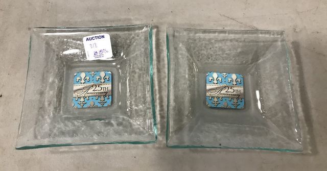 318 Two Small Annie Glass Celebrating 25 Years Square Trays