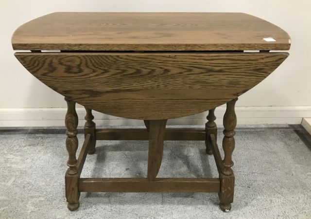 Oak Drop Side Gate Leg Table, Oval top, has some worn spots, 25"h., 32"w. Oak Drop Side Gate Leg Table, Oval top, has some worn spots, 25"h., 32"w.