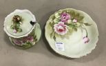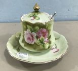 414 Lefton China Heritage Rose Jelly Jam Jar and Plate
