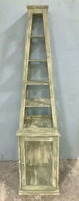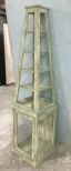 Modern Painted Pyramid Display Stand, glass bottom display with single door, four shelves, 76"h., 18"w. Modern Painted Pyramid Display Stand, glass bottom display with single door, four shelves, 76"h., 18"w.
