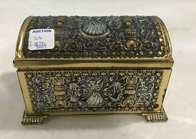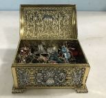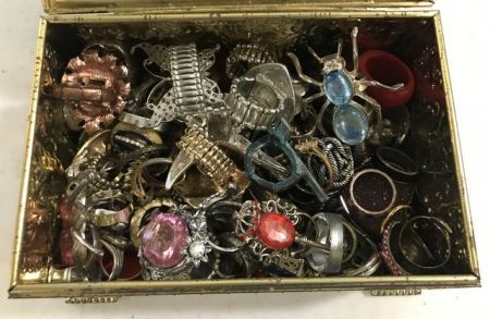 Collection of Appx. 100 Costume Rings in ornate metal jewelry box. Collection of Appx. 100 Costume Rings in ornate metal jewelry box.