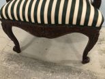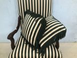 Reproduction French Style Arm Side Chair, striped upholstered fabric, two matching throw pillows, 45"h. Reproduction French Style Arm Side Chair, striped upholstered fabric, two matching throw pillows, 45"h.