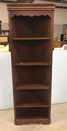 Modern Cherry Open Front Corner Bookcase, four shelves, 76"h., 24"w. Modern Cherry Open Front Corner Bookcase, four shelves, 76"h., 24"w.