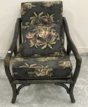 Vintage Bamboo Style Arm Chair, cane and bamboo style, elephant style cushions and pillows, 28"h. Vintage Bamboo Style Arm Chair, cane and bamboo style, elephant style cushions and pillows, 28"h.