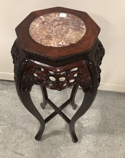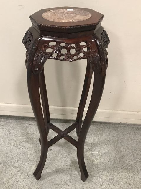 699 Vintage Marble Top Oriental Plant Stand