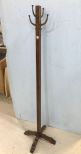 Vintage Oak Coat/Hat Rack Stand, four metal hooks, 70"h. Vintage Oak Coat/Hat Rack Stand, four metal hooks, 70"h.