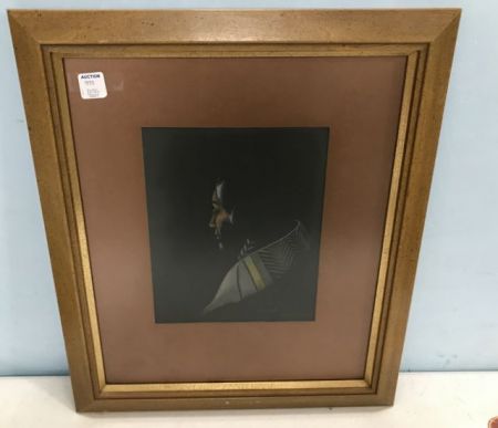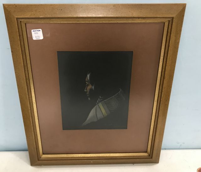 "Firelite Face" by Mabel Norris Bjork, Blackfeet Indian people, born in Crookston, Minnesota in 1902, she oved to North Dakota as a child in 1905, chalk portrait, 20"h., 17"w. "Firelite Face" by Mabel Norris Bjork, Blackfeet Indian people, born in Crookston, Minnesota in 1902, she oved to North Dakota as a child in 1905, chalk portrait, 20"h., 17"w.