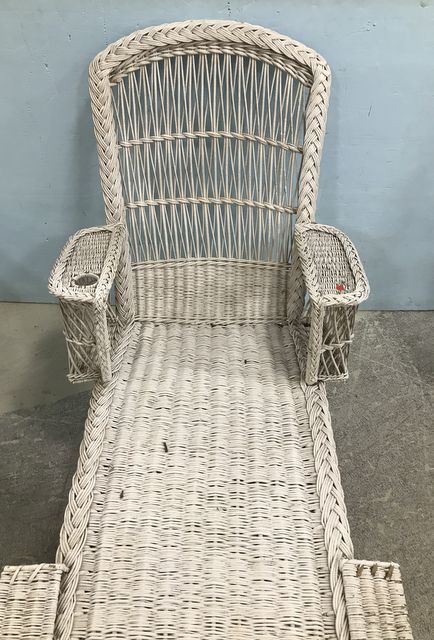 783 Vintage White Wicker Lounger
