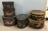 Group of Decorative Storage Boxes, three cardboard storage boxes 8"h., 13"w., two upholstery boxes. Group of Decorative Storage Boxes, three cardboard storage boxes 8"h., 13"w., two upholstery boxes.