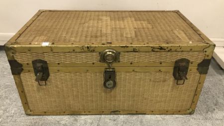 803 Vintage Brass and Woven Style Storage Trunk