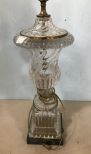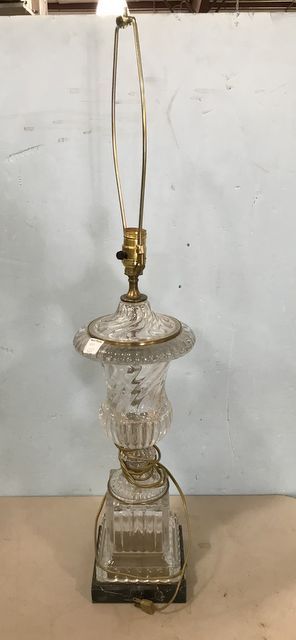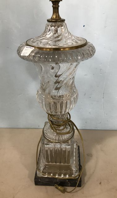 Clear Swirl Glass Urn Style Table Lamp, marble style base, 35"h. Clear Swirl Glass Urn Style Table Lamp, marble style base, 35"h.