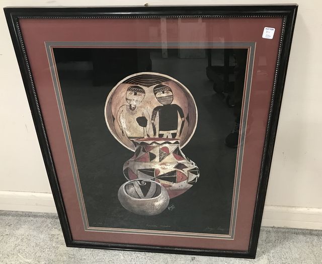 "Mostly Mimbres" Print, signed Jacque Day, numbered 36/1000, framed, 34"h., 28"w. "Mostly Mimbres" Print, signed Jacque Day, numbered 36/1000, framed, 34"h., 28"w.