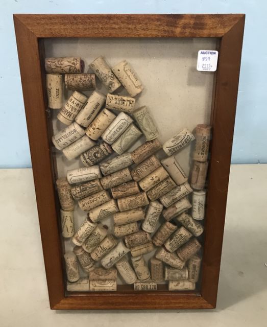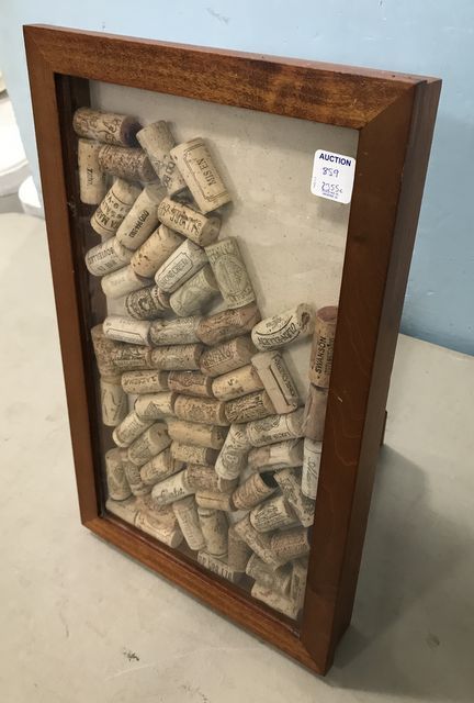 Pottery Barn Shadow Box Frame, plastic front door, with wine corks, 18"h., 11"w. Pottery Barn Shadow Box Frame, plastic front door, with wine corks, 18"h., 11"w.