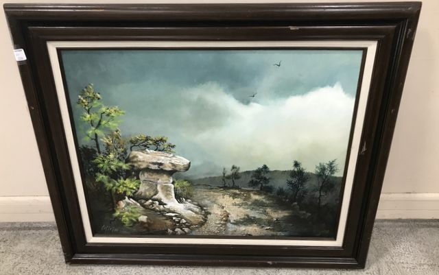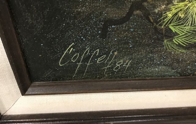 Landscape Painting on canvas, signed lower left, Coffell, 1984, framed, 30"h., 36"w. Landscape Painting on canvas, signed lower left, Coffell, 1984, framed, 30"h., 36"w.