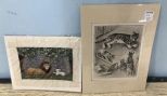 Lion, Goat Needle Point, and Madeline Gauney Cat Print 12"h., 9"w. Lion, Goat Needle Point, and Madeline Gauney Cat Print 12"h., 9"w.